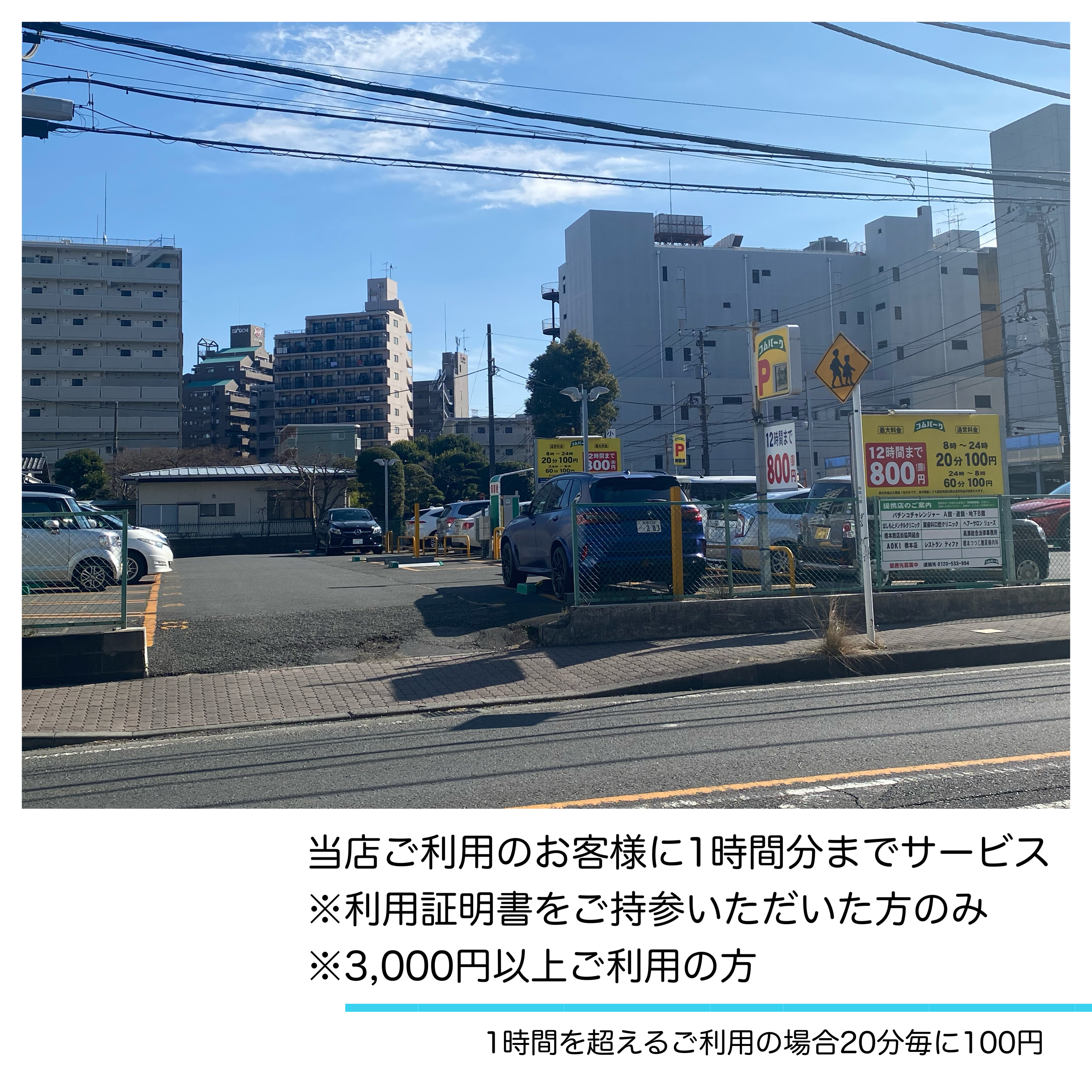 当店をご利用のお客様には、1時間分の駐車コインをお渡ししております